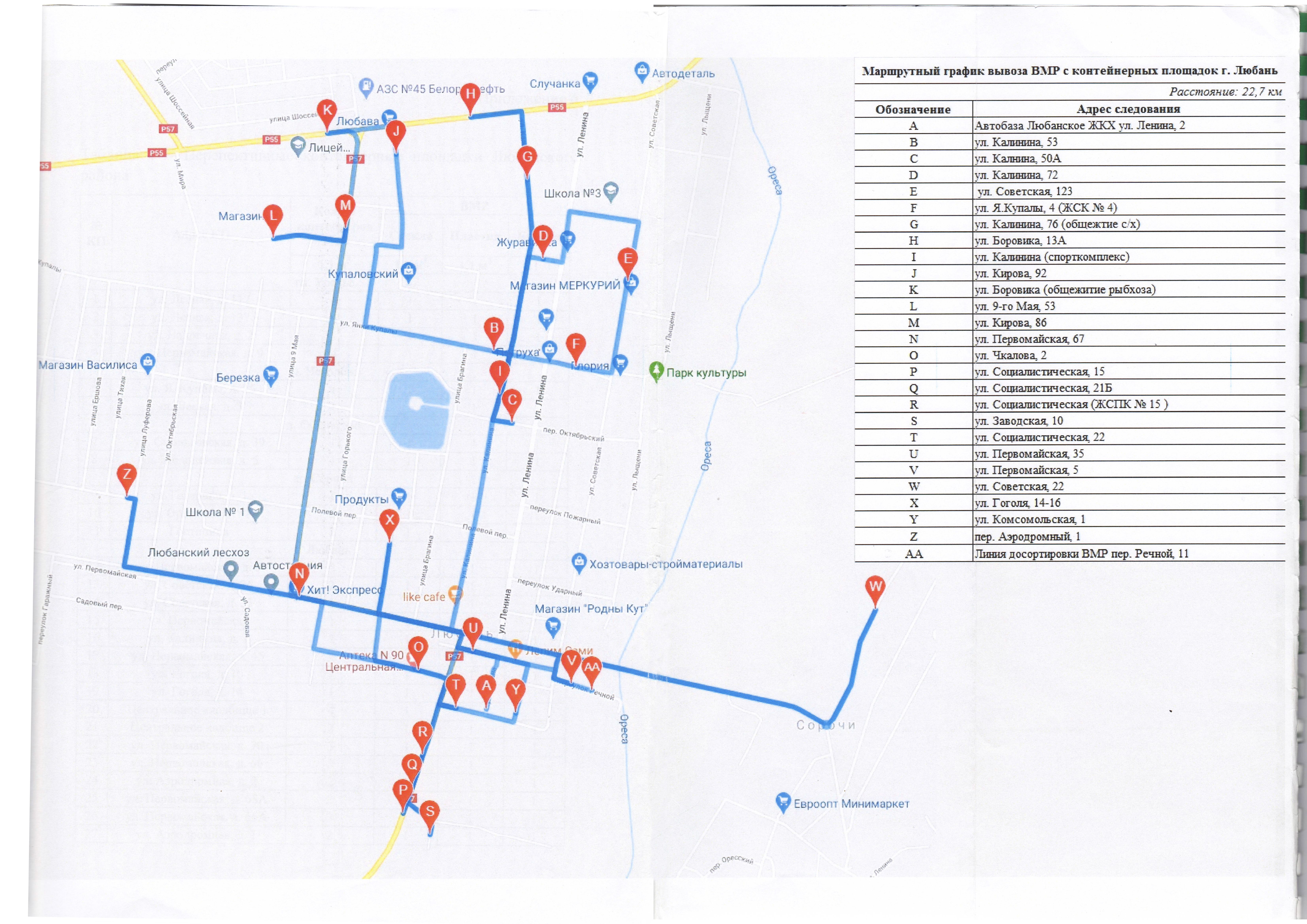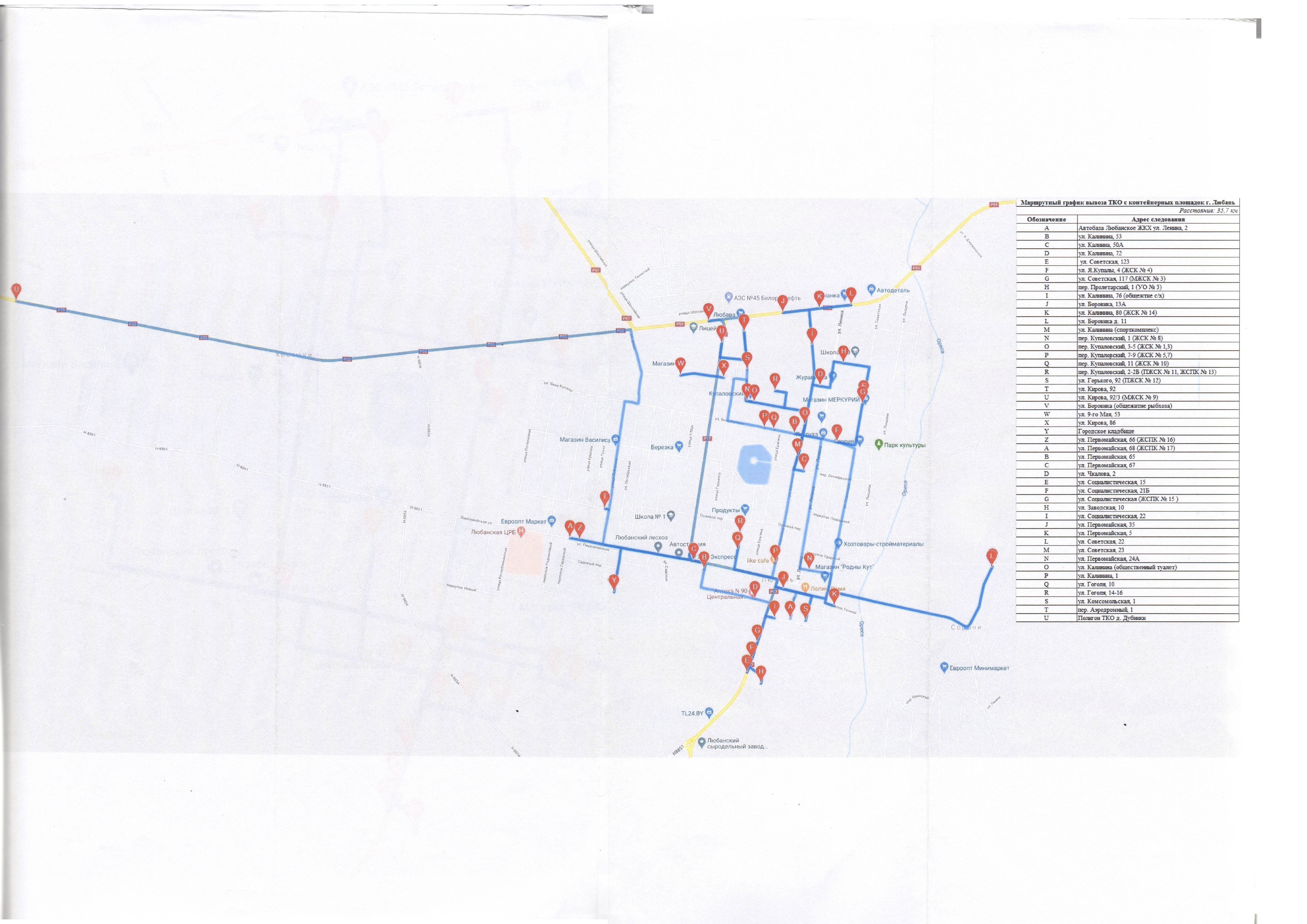 Графики сбора и удаления коммунальных отходов на территории Любанского района